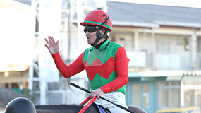小牧 馬主の伊藤(永二郎)さんと、ようやく口取り写真が撮れましたわ。伊藤さんの馬ではビッグリヴァーサルでも勝っているけど、ガンバルフトシは中央で苦しんでいた僕を応援するために買ってくれて、馬名にも僕の名前を入れてくれてね。今回、園田にきてから初めて乗ったんやけど、メンバー的にチャンスがあるなと思っていたので、ホンマに勝ててよかったです。いいレースもできたし。
